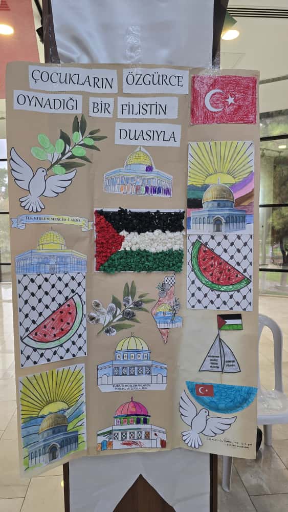 04/10/2025Çocuklar küçücük elleri ile Filistinli çocuklar için bizde ne yapabiliriz diyerek resim çizmeye ve yanlarında olduklarını göstermek için bir araya geldiler. Biz de Türkiye Dil ve Edebiyat Derneği Manisa Şubesi olarak çocuklarımıza destek verdik. İnşallah tez zamanda bu zulüm sona erer, dualarımız Filistin içindi. Programda bizimle olan tüm çocuklarımıza, ailelerine ve programda emeği geçen herkese çok teşekkür ediyoruz
